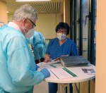 In dem Bereich der Klinik, der extra für die Impfungen vorbereitet wurde, geht es wuselig, aber keinesfalls hektisch zu. Vor der Impfung werden die Mitarbeiterinnen und Mitarbeiter noch einmal über mögliche Nebenwirkungen und die Impfung allgemein aufgeklärt. Danach geht es schnell – ein kurzer Piks, Pflaster drauf und die erste Impfdosis ist gesetzt. In etwa drei bis vier Wochen folgt dann die nächste, damit die Impfung ihre volle Wirkung zeigen kann.