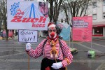 Ein entsprechendes Schild hält Lothar Spohr ansonsten bei den üblichen Rosenmontagszügen als dem Zuch vorangehender fröhlicher Clown hoch und sollte auch diesmal für Beachtung am Fahnenhügel auf dem Luisenplatz sorgen. Einige weitere gut gelaunte Passanten waren dort ebenfalls präsent und gern hätten sie Lothar Spohr und seine Ehefrau bei dem vorgesehenen Mini-Karnevalszug mit fröhlichen Alaaf-Rufen (immer natürlich mit Abstand und „Masken“) begleitet.