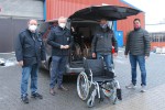 Die Firma Medizintechnik Bruhs aus Asbach unterstützt das Impfzentrum des Kreises Neuwied in Oberhonnefeld mit einer Leihgabe von mehreren Rollstühlen. Diese konnten Landrat Achim Hallerbach und Impfkoordinator Werner Böcking von Inhaber Peter Bruhs vor dem Impfzentrum in Empfang nehmen.