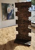 Bad Honnef. "WE BREATHE IN WHEN PLANTS BREATHE OUT" ist eine minimalistische Textskulptur aus pulverbeschichtetem Stahl, ...