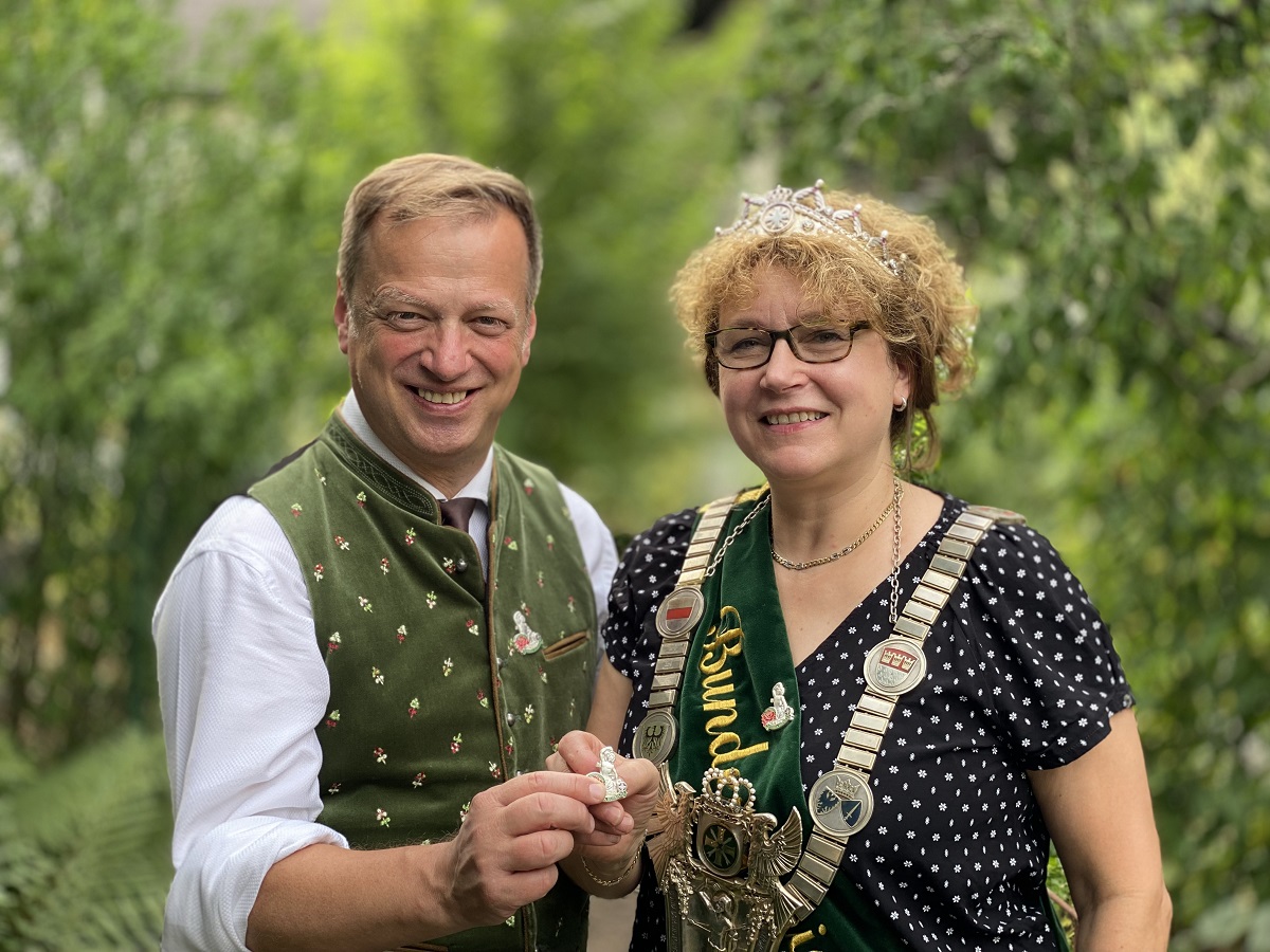 Die aktuellen Zahlen der Bundesregierung bestätigen ebenfalls die Notwendigkeit des Hilfs-Projektes des Bundeskönigspaares zugunsten von Opfern häuslicher Gewalt. Mit ihrer Benefizaktion setzen sich Andrea Reiprich und Prinzgemahl Thomas Herschbach über die Interventionsstelle der Caritas Rhein-Wied-Sieg in Neuwied für solche Menschen in Not ein. Hier gilt das Hauptaugenmerk hilfsbedürftigen Frauen. Sichtbarer Ausdruck ist der Charity-Pin, dessen Erlös der Interventionsstelle zu Gute kommt.